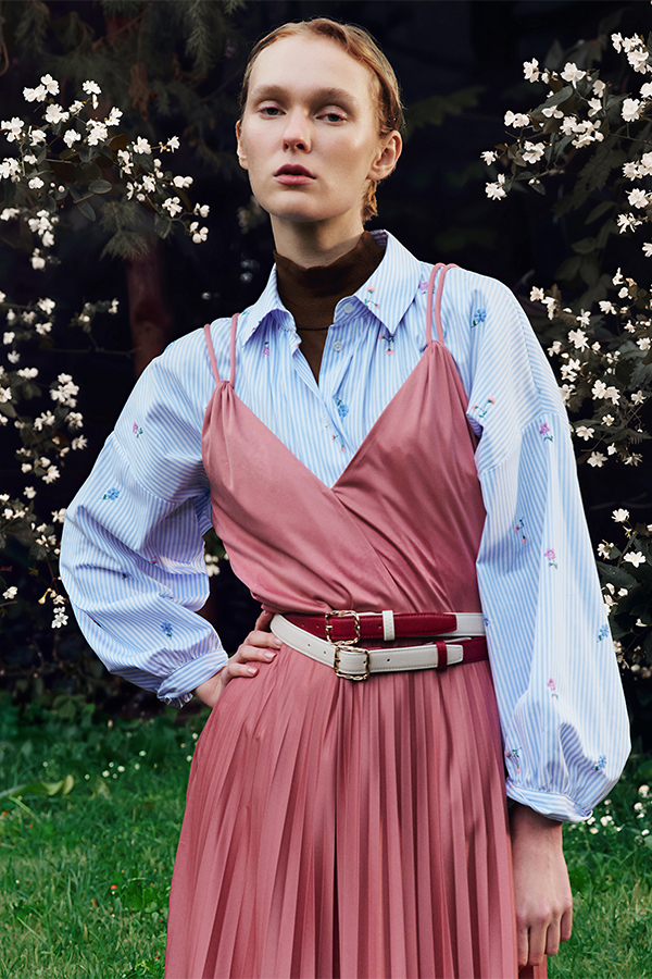 The new season is defined through a bold colour language. It’s not about decoration, but a visual architecture where macro botanical prints dialogue with primary hues. Crimson red is set against silk, while sculptural floral patterns redefine the volumes of trench coats and trousers. An intentional aesthetic, where pigment shapes the identity of the silhouette.