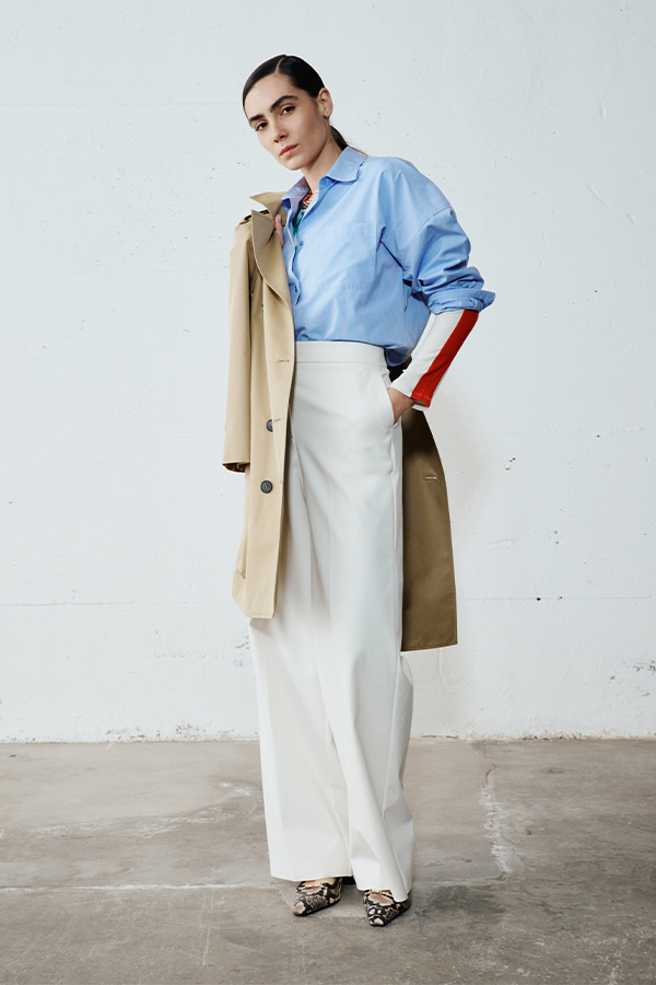 Discover a sporty attitude with a sophisticated touch. This spring the wardrobe combines neutrals with polished details, mixing lightweight sweatshirts and trousers defined by wide volumes to create a casual yet highly refined look.