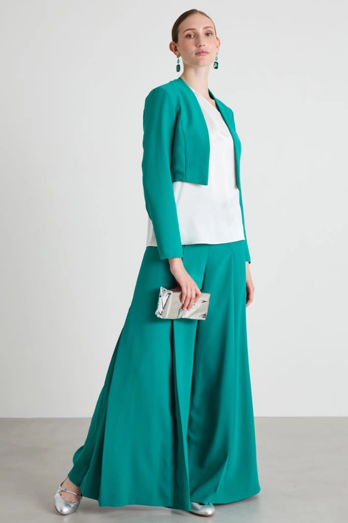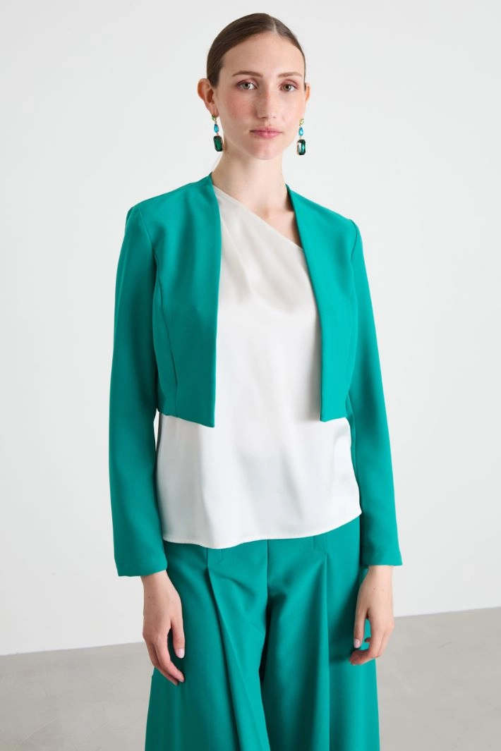 Cropped cady jacket with a straight fit with a V-neck and long sleeves. Without fastening. Unlined.
