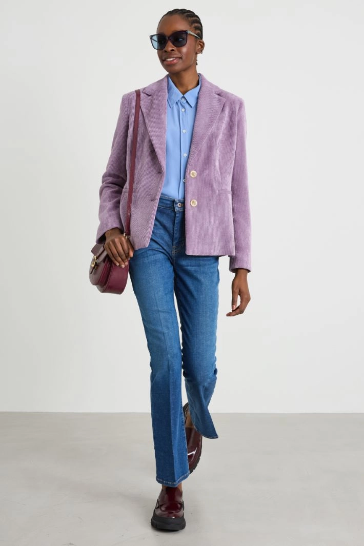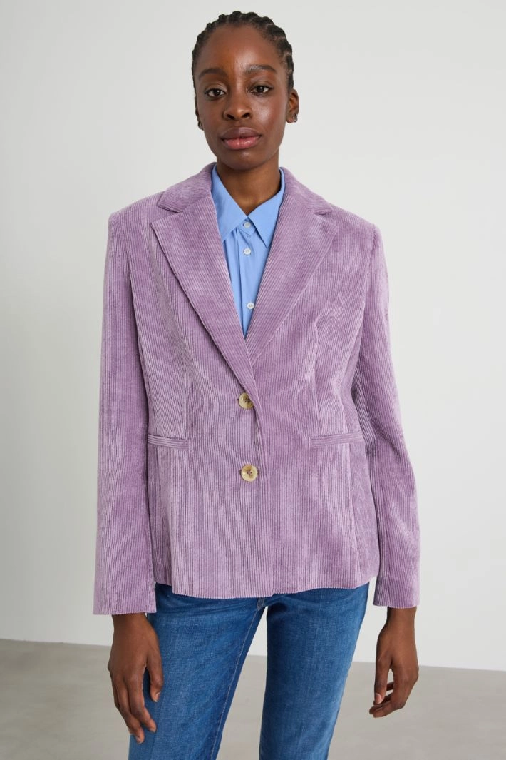 Slightly fitted blazer in stretch corduroy with a lapel collar, long sleeves, side welt pockets and single-breasted button fastening. Lined.