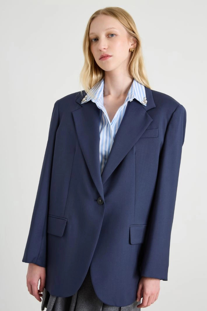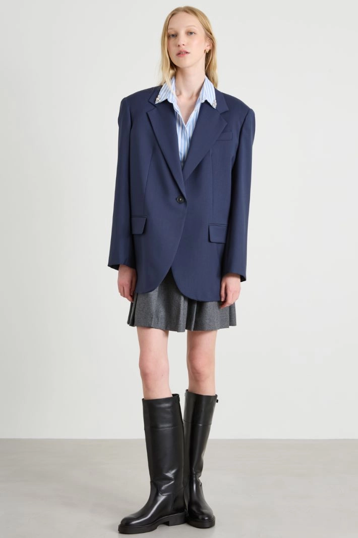 Oversized blazer in wool and viscose blend canvas, with lapel collar, shoulder pads, long sleeves, double welt side pockets with flap and central vent on the back. Central vent on the back and single-breasted fastening with a single button. Lined.