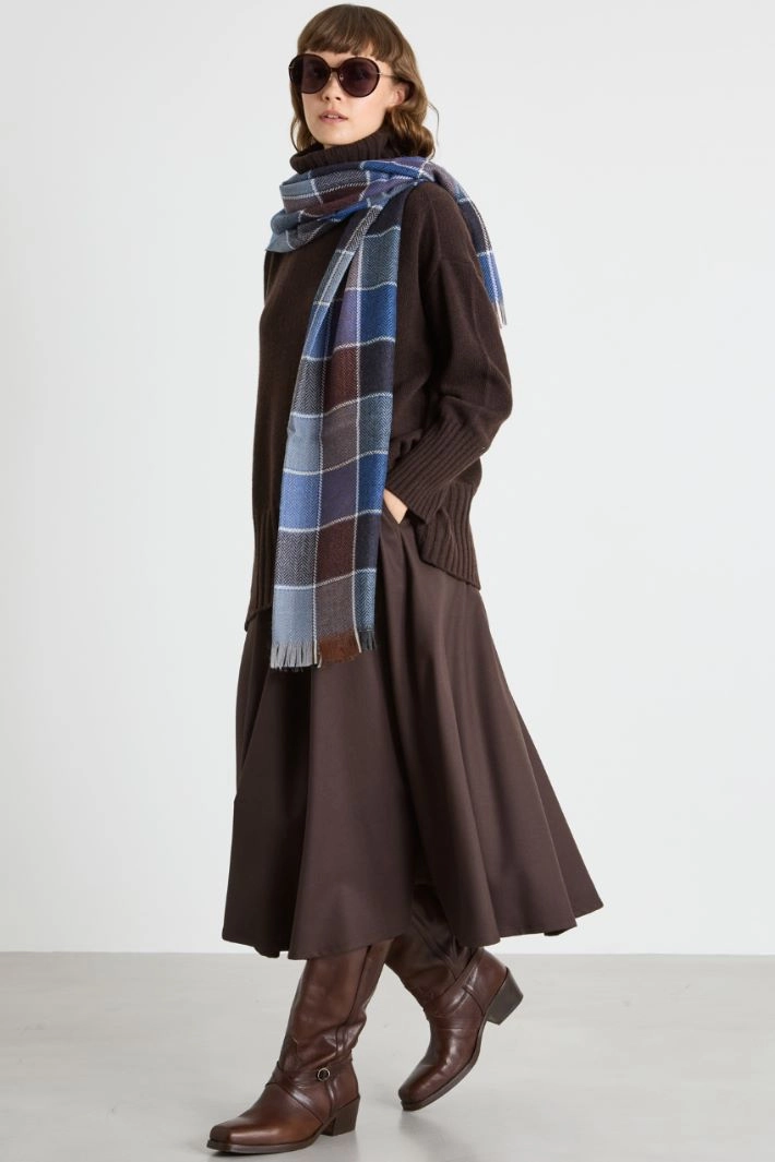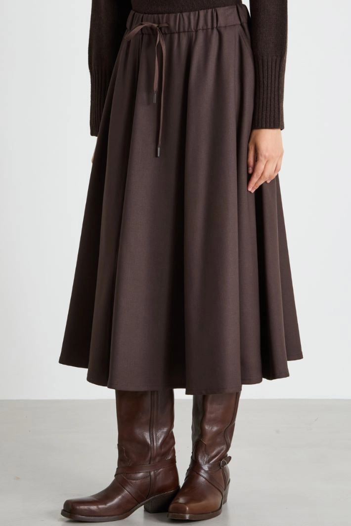 Flared midi skirt in pure wool canvas, with elastic insert and drawstring at the waist, and French pockets on the front.
