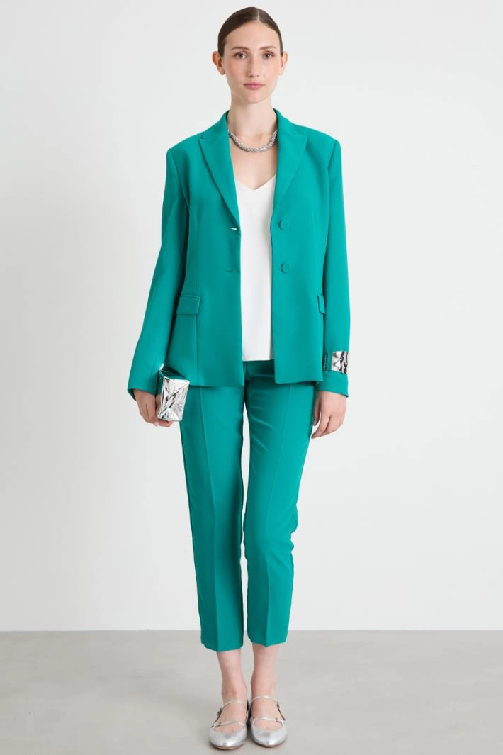 Slim fit envers satin trousers with pressed crease along the length and hidden fastening with zip, button and hook.
