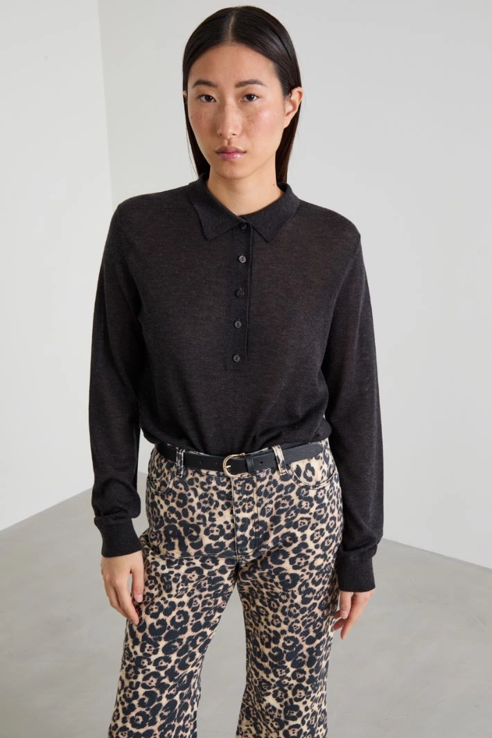 Regular-fit polo shirt in natural fibre and wool, with a classic collar and button opening, long sleeves and ribbed trim.