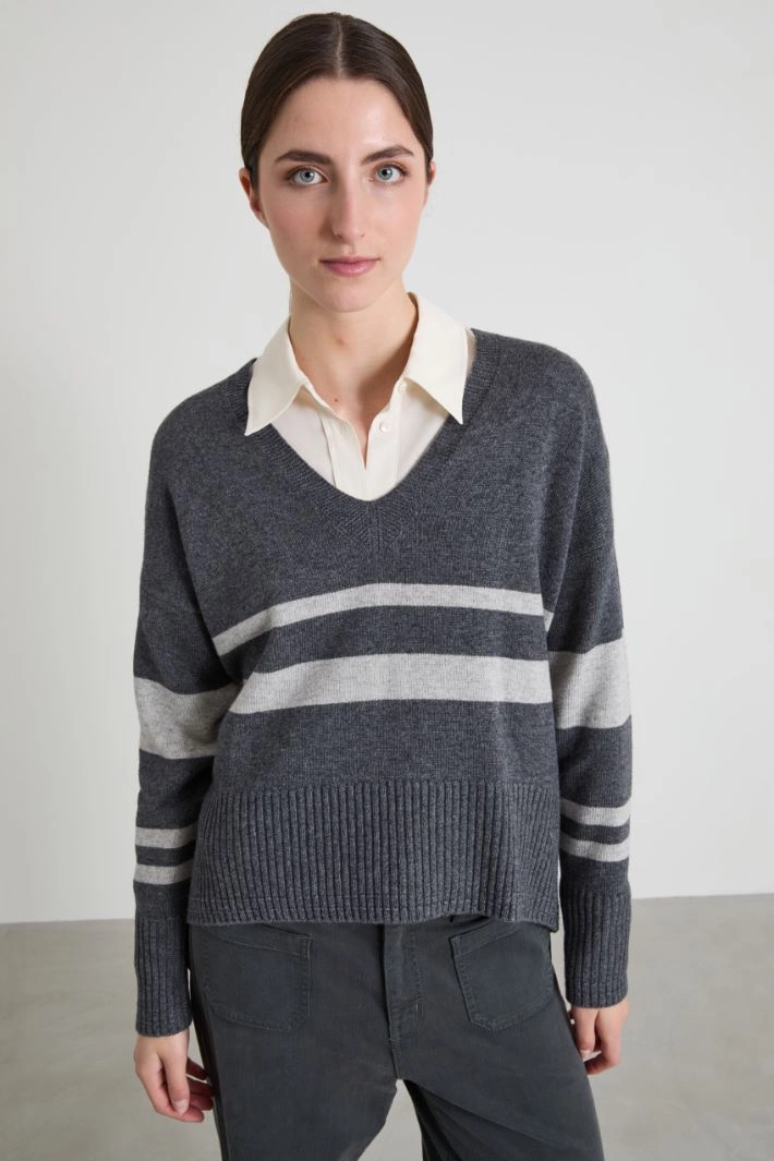 Oversized, straight-cut sweater in a wool blend yarn, with a V-neck, dropped shoulders and long sleeves.
