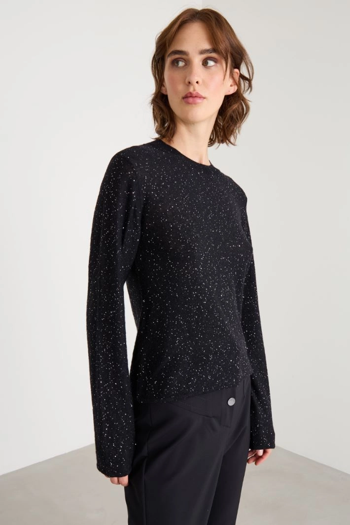 Regular-fit sweater in alpaca blend yarn and embroidered sequins, with a crew neck and long sleeves.