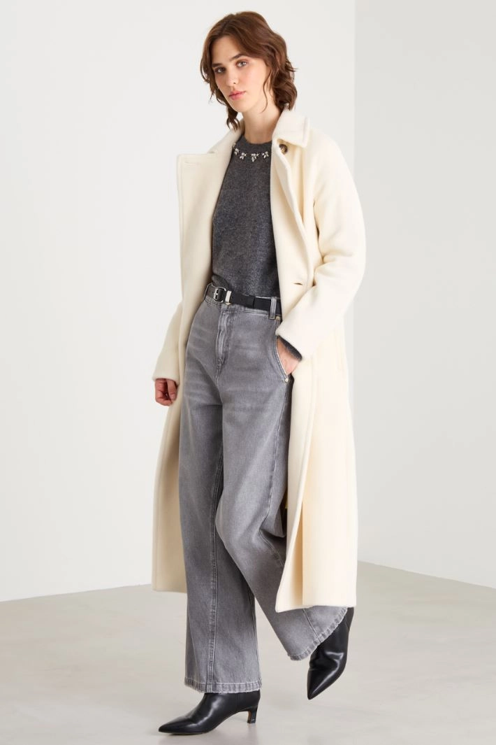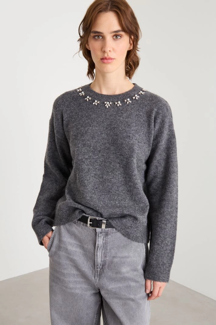 Regular-fit sweater in alpaca blend yarn, with a crew neckline embellished with crystal and pearl embroidery, long sleeves and ribbed edges.
