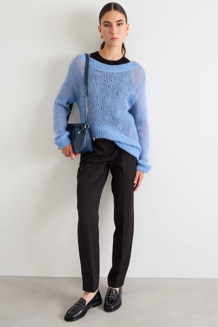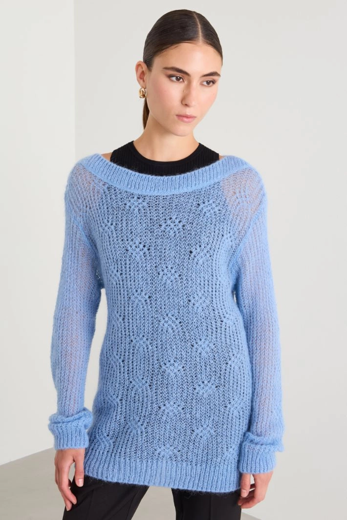Loose-fit sweater in blend of alpaca and mohair, boat neckline, slightly dropped shoulders, long sleeves and ribbed edges on the cuffs, collar and hem.