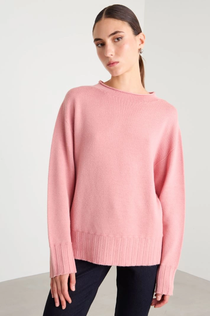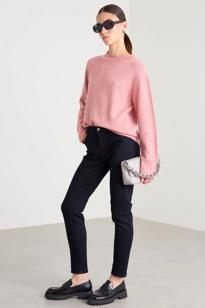 Straight-cut sweater in pure wool yarn, with round neckline, long sleeves and ribbed edges.