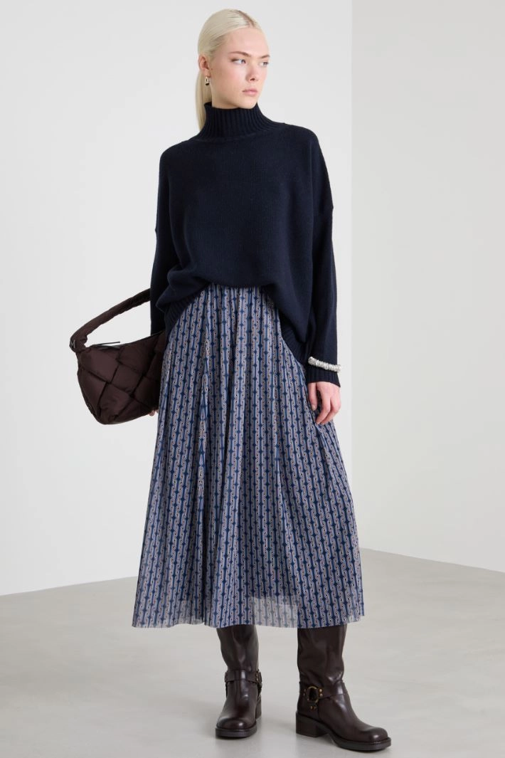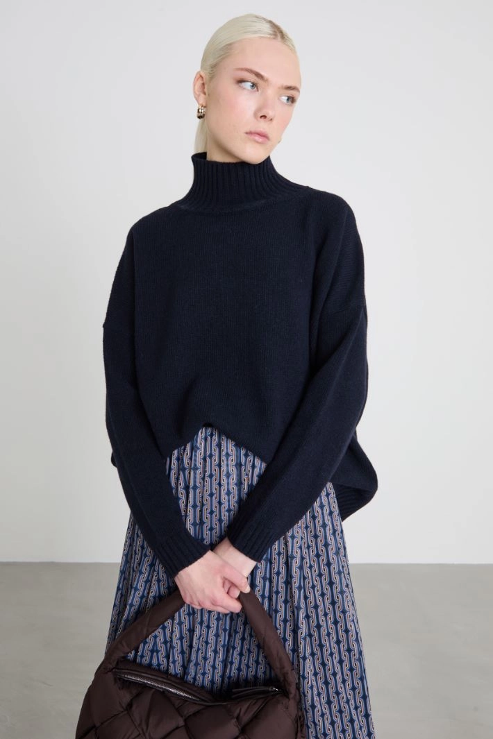Oversized sweater in pure wool yarn, with a crater neck, long sleeves with dropped shoulders and ribbed trim.