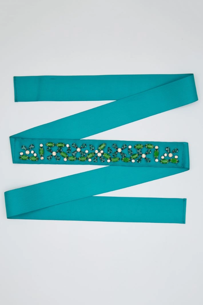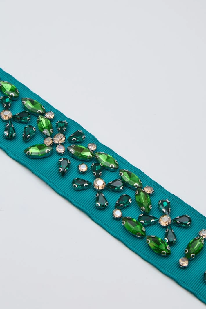 Belt in grosgrain with a matching embroidered rhinestone motif.