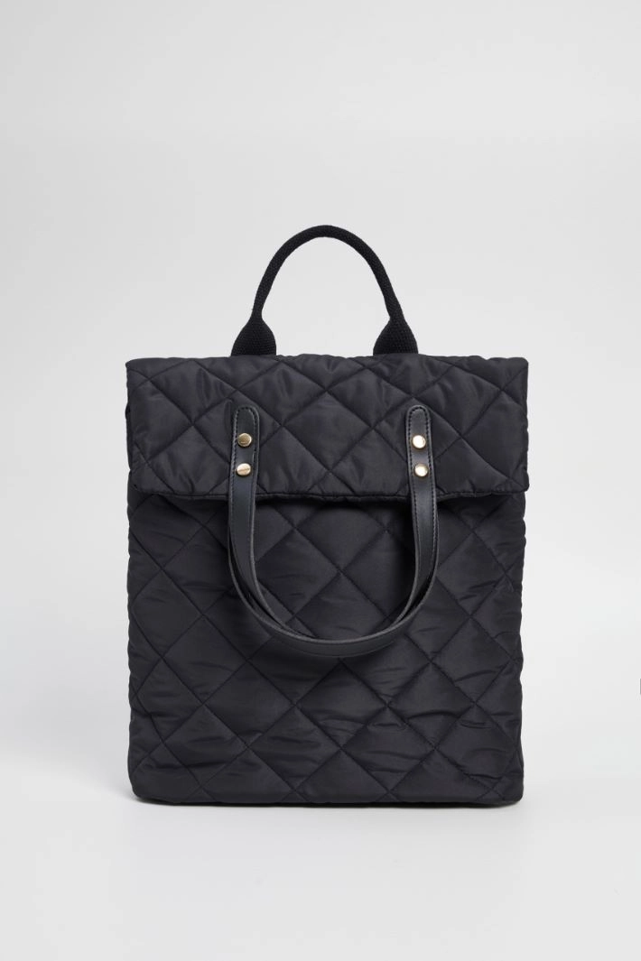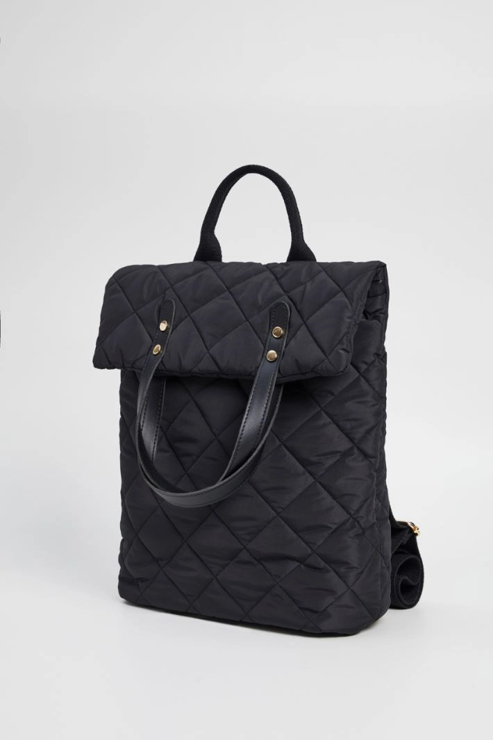 Backpack in padded and quilted technical fabric, with adjustable shoulder straps, single handle and double handles. Zip closure. Lined interior with pocket.