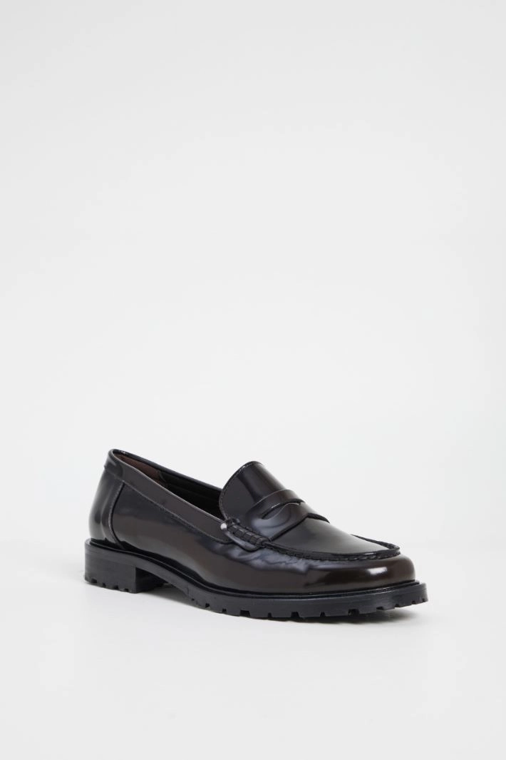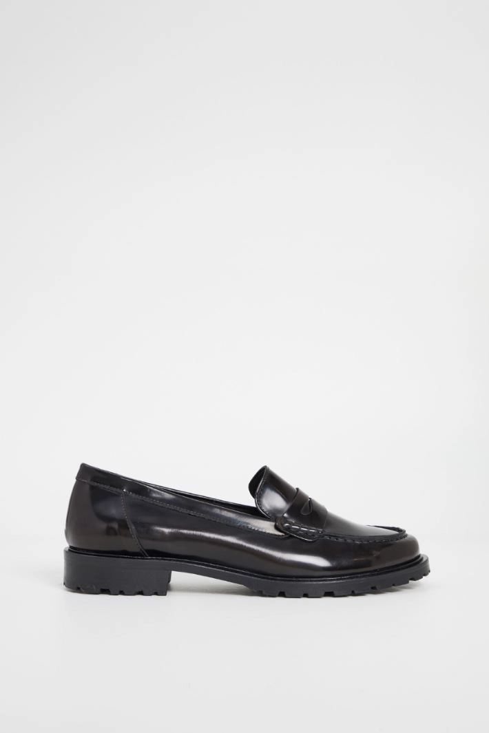 Moccasins in genuine leather with a shiny finish, with stitching on the upper. Leather lining and rubber sole.