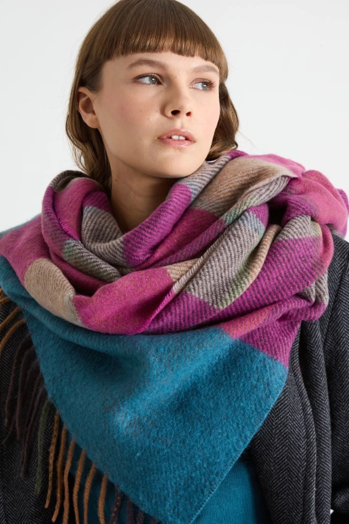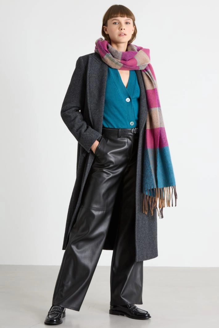 Stole in yarn-dyed fabric, with fringes at the bottom.