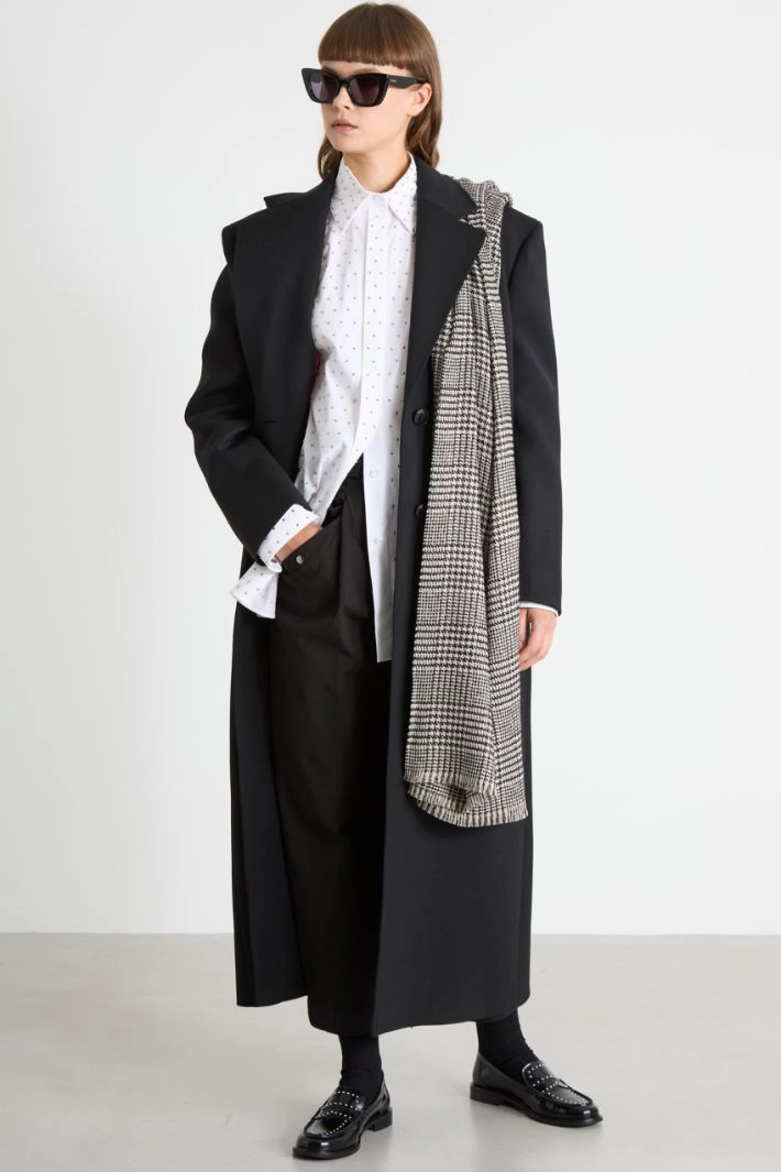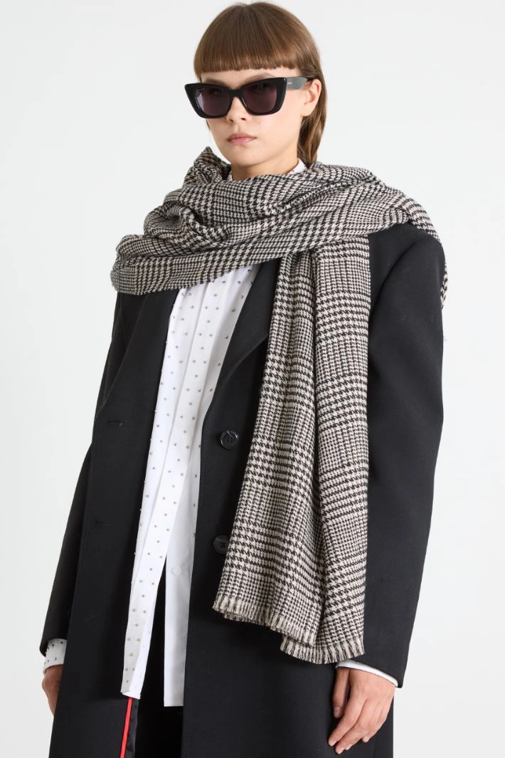 Scarf in soft yarn-dyed fabric with lamé fibre.