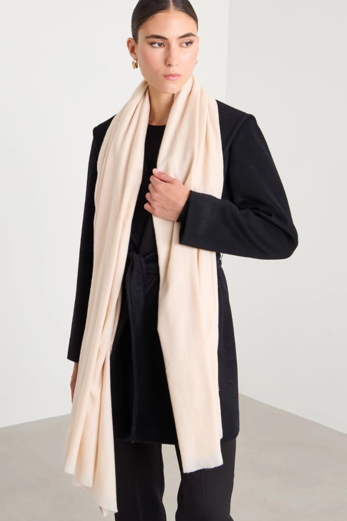 Stole in soft fabric, with fringed edges.