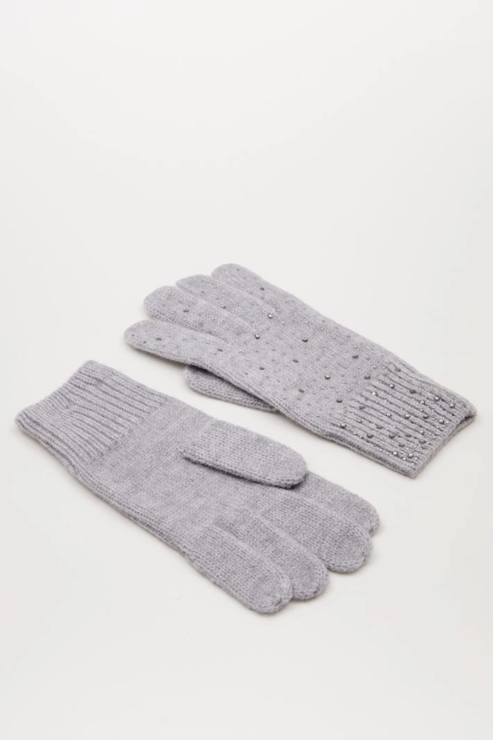 Knitted gloves with rhinestones