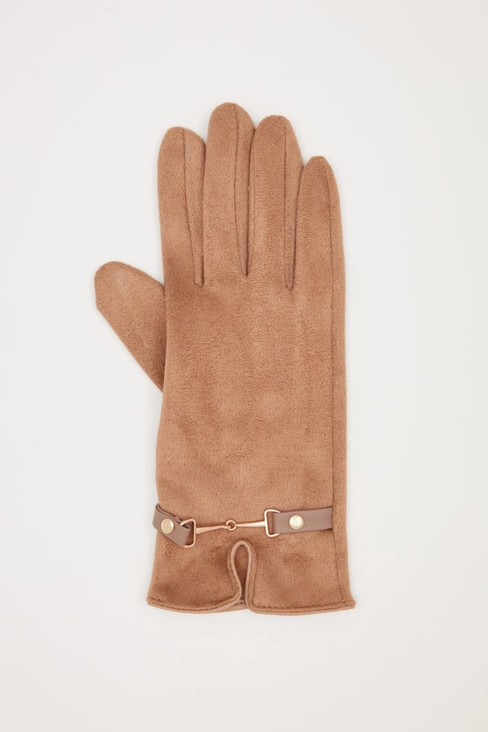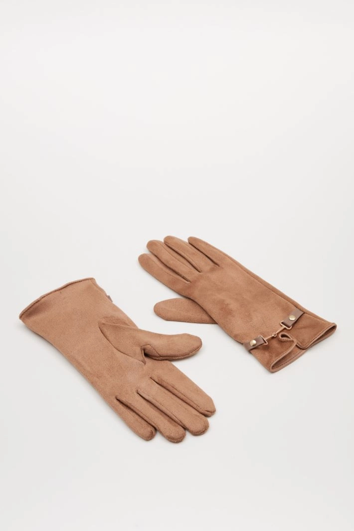 Gloves in stretch suede-effect jersey, with a clip on the wrist. Plush lining.