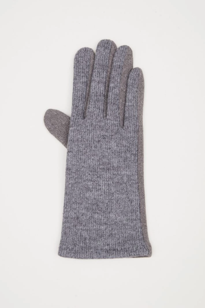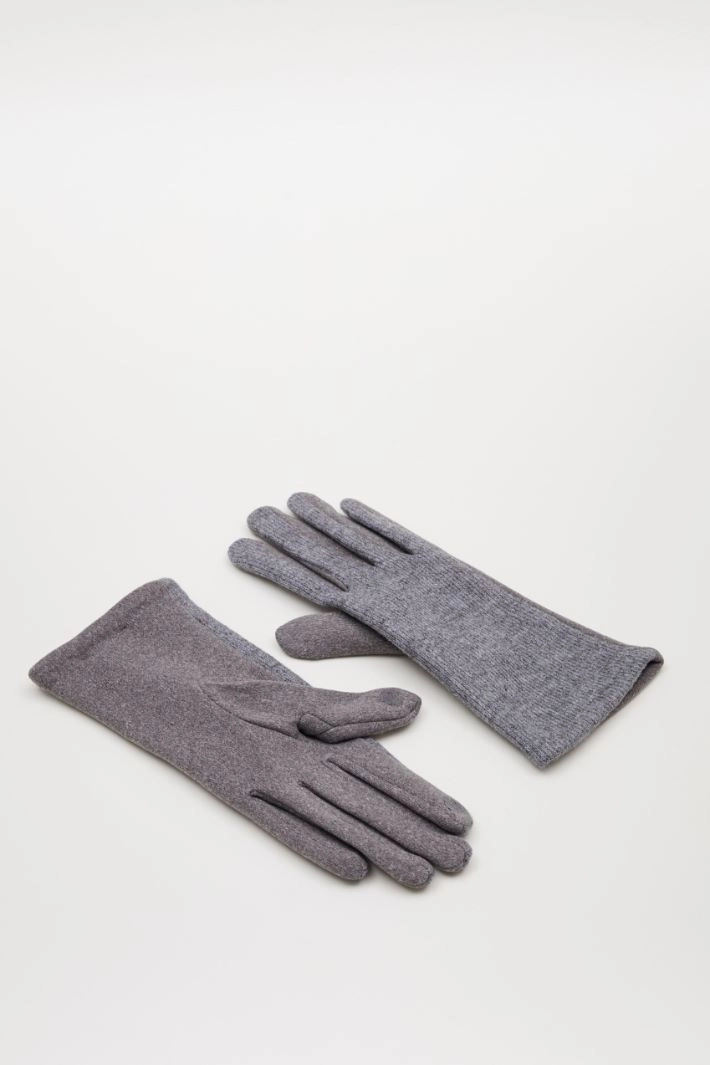 Gloves in stretch jersey, with ribbed insert. Plush interior.