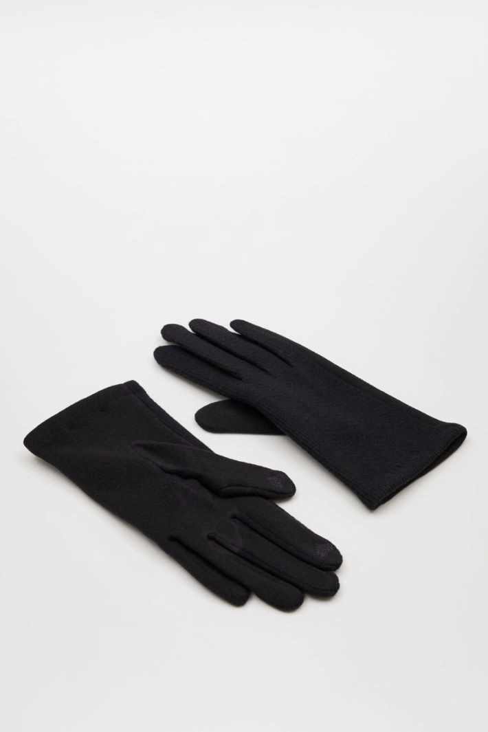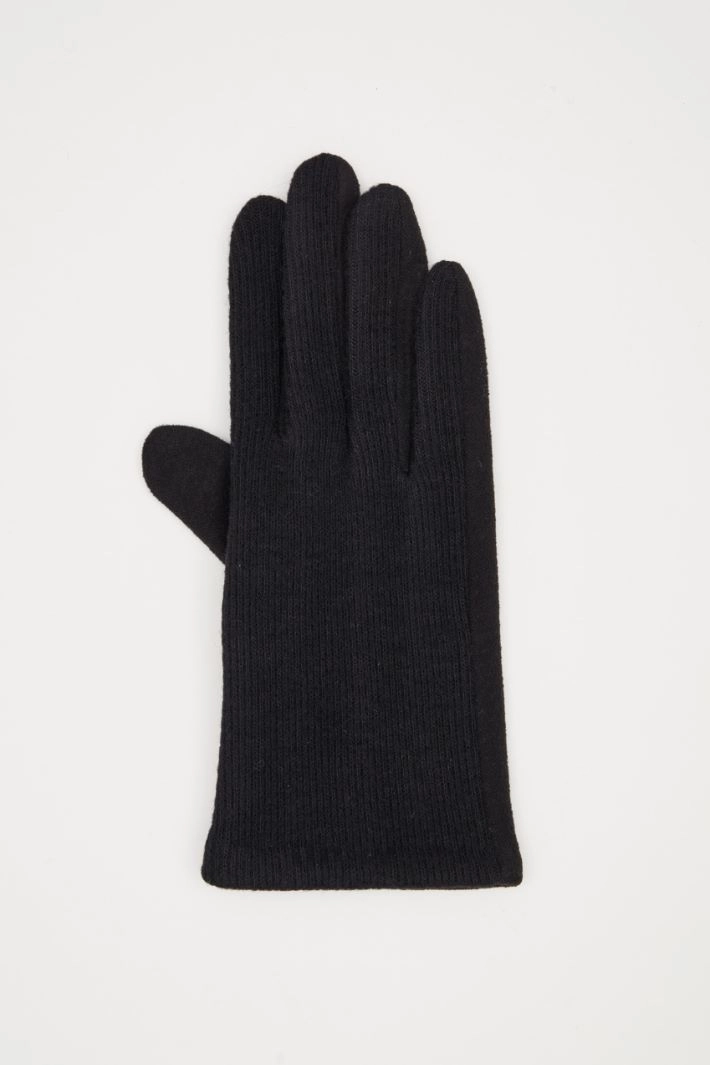 Gloves in stretch jersey, with ribbed insert. Plush interior.