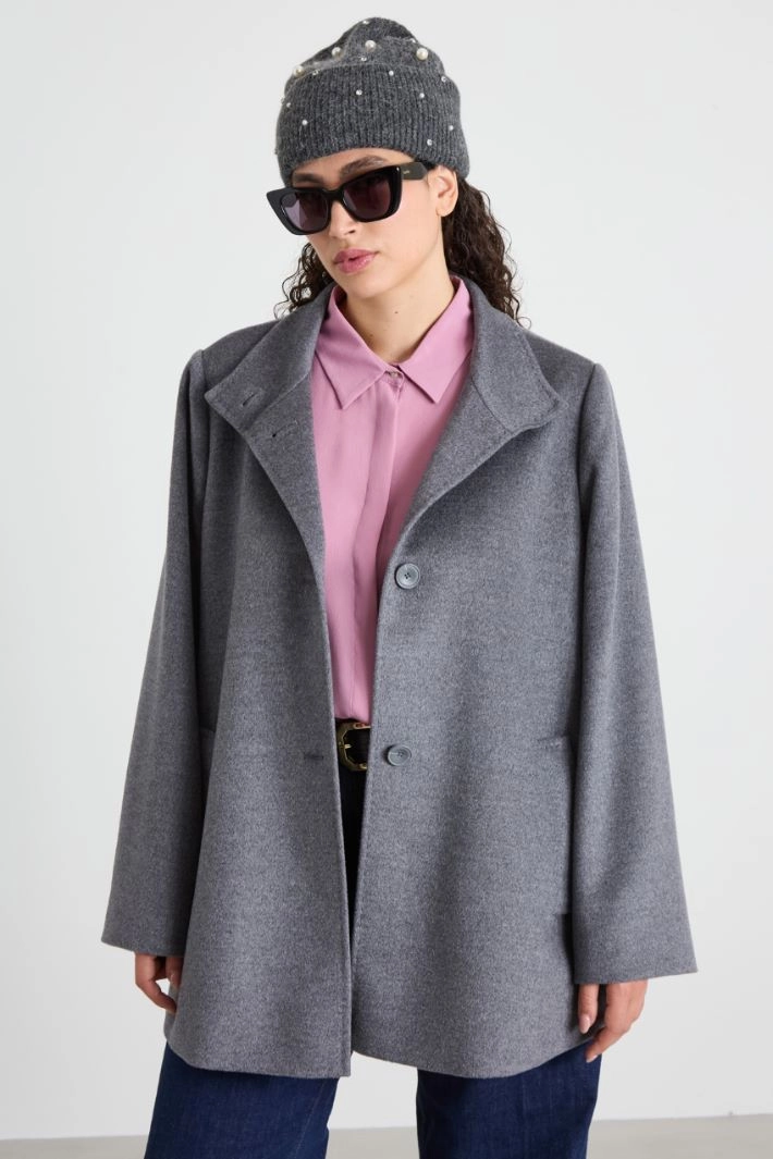 Wool yarn hat with cuff and embroidered pearls and stones.