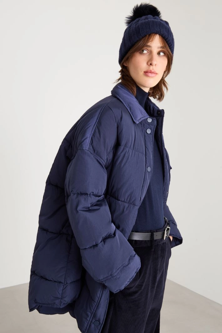 Ribbed wool blend yarn hat with turn-up and pom pom.