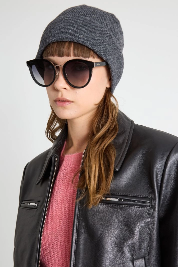 Hat in wool and viscose blend yarn with ribbed knit and turn-up.