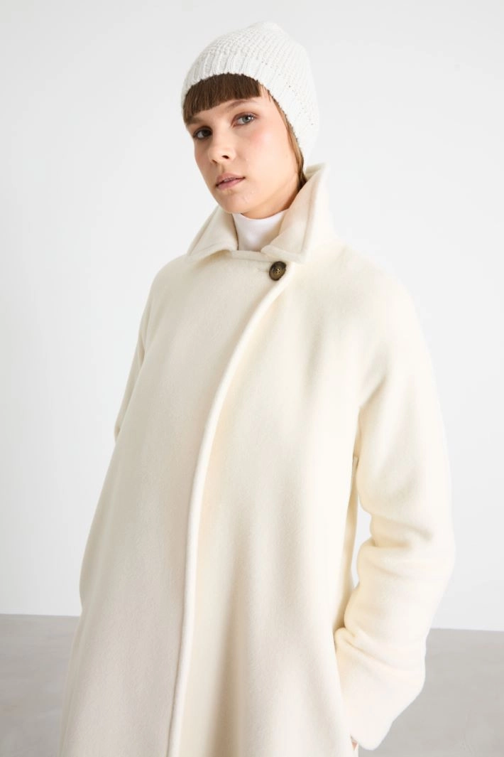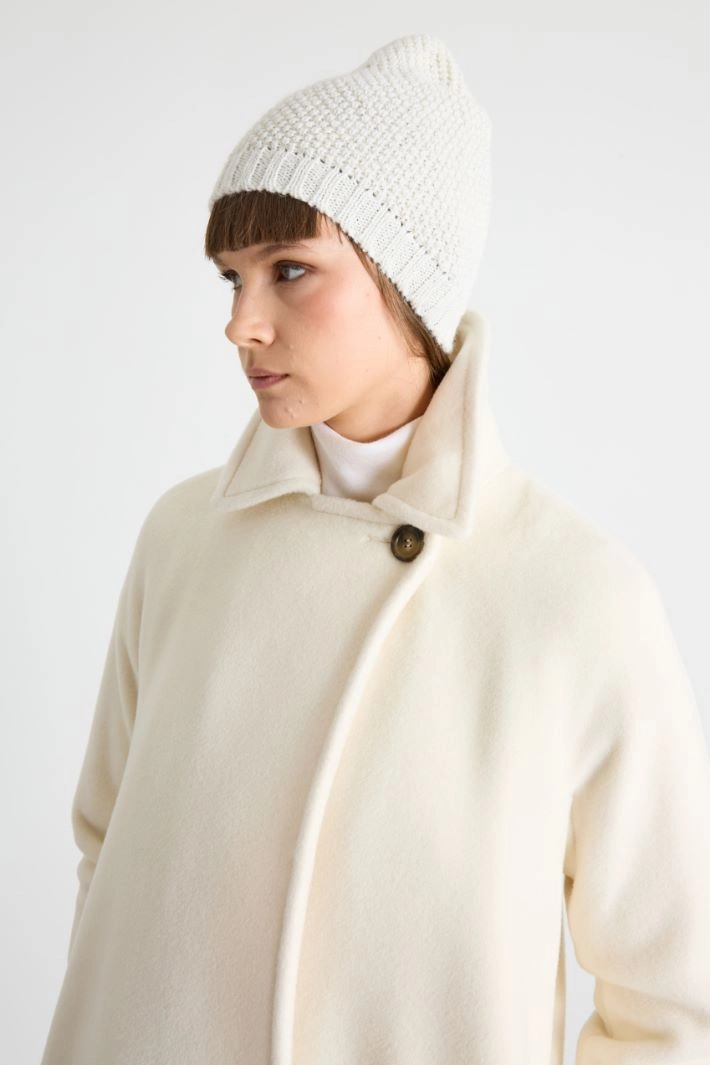Hat in alpaca and wool yarn with lamé inserts and raised motif.