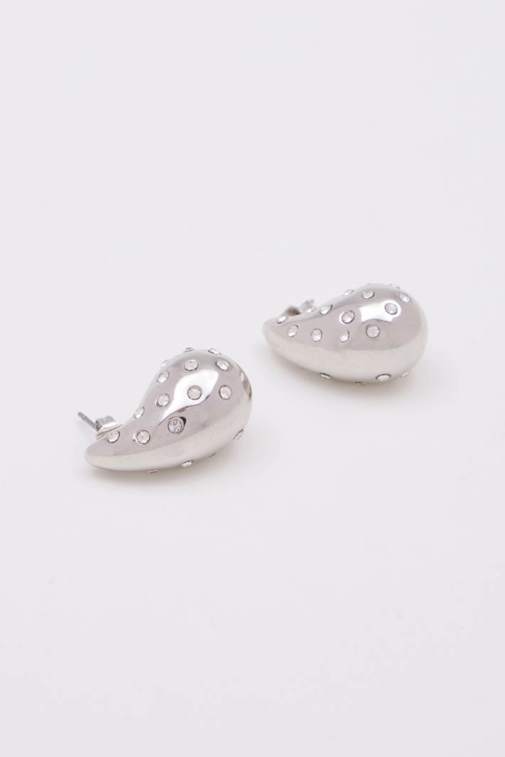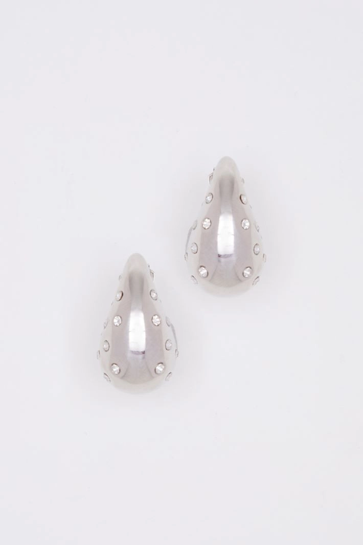 Drop metal earrings with rhinestone application. Butterfly fastening.