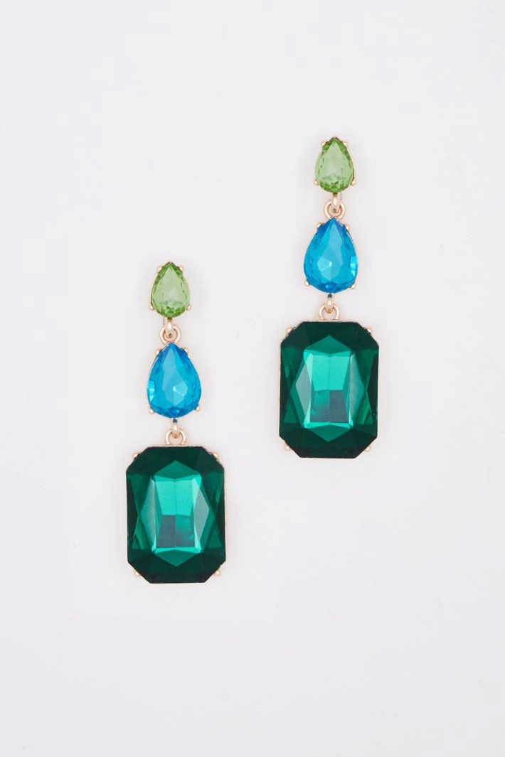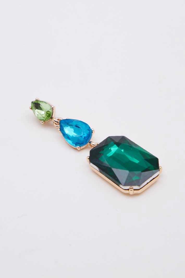 Drop metal earrings with rhinestone detail. Butterfly closure.