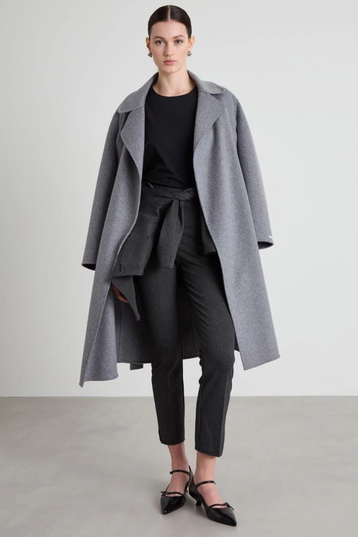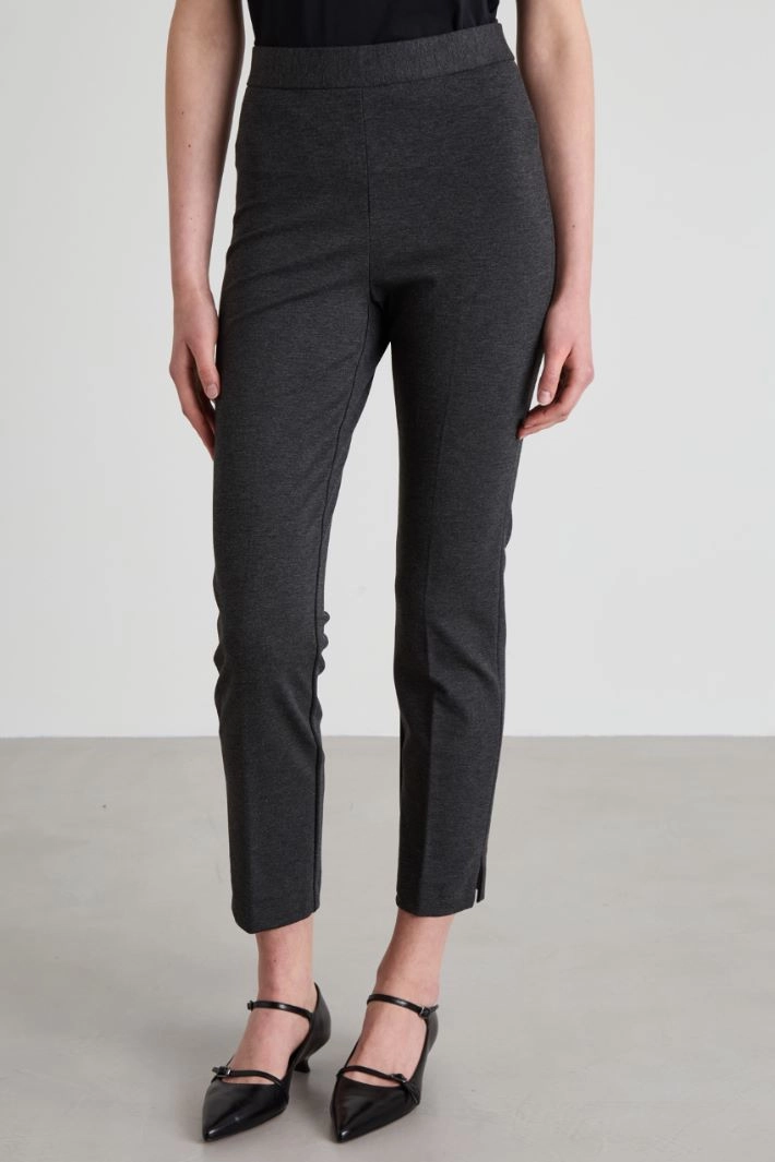 Slim trousers in viscose blend jersey, with elasticated waistband, crease along the length and side slits at the hem.