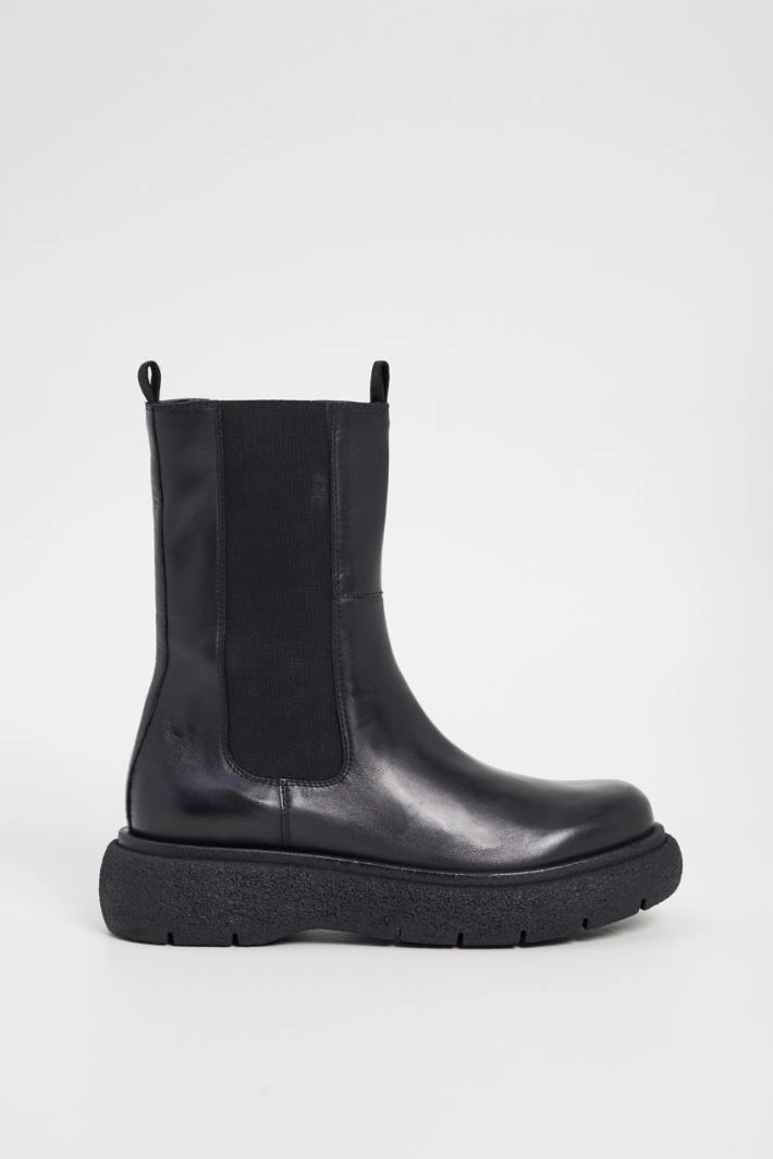 Ankle boots in genuine leather with elastic inserts on the sides and chunky rubber sole.