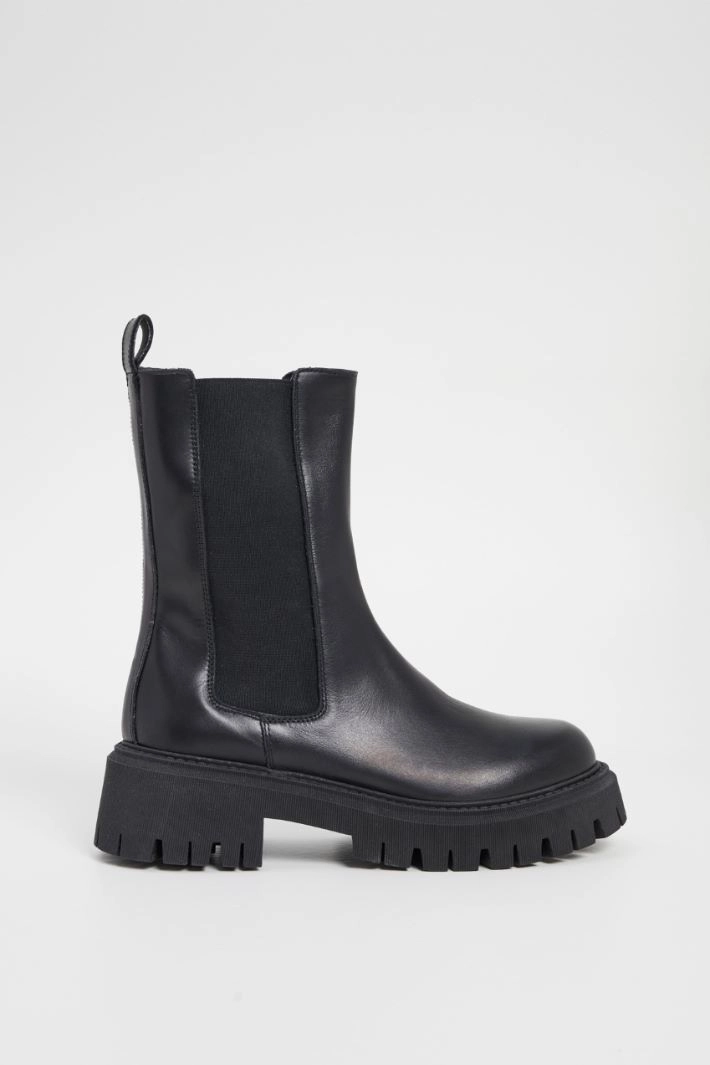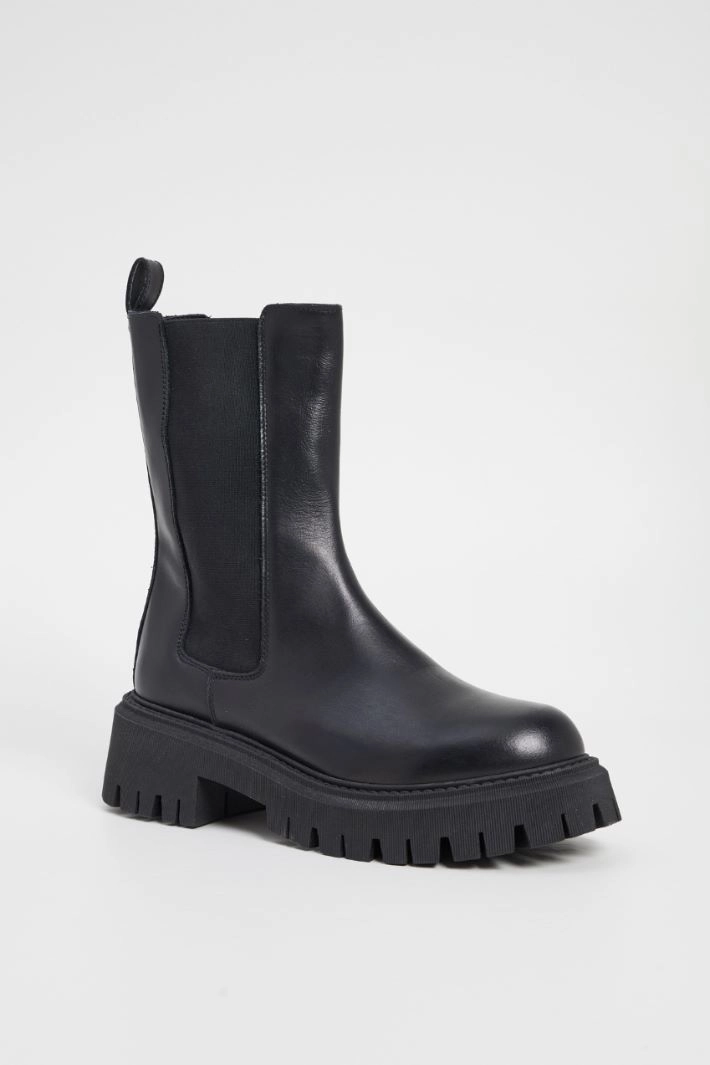 Biker in genuine leather, with elastic insert on the sides and rounded toe. Leather lining and rubber sole.