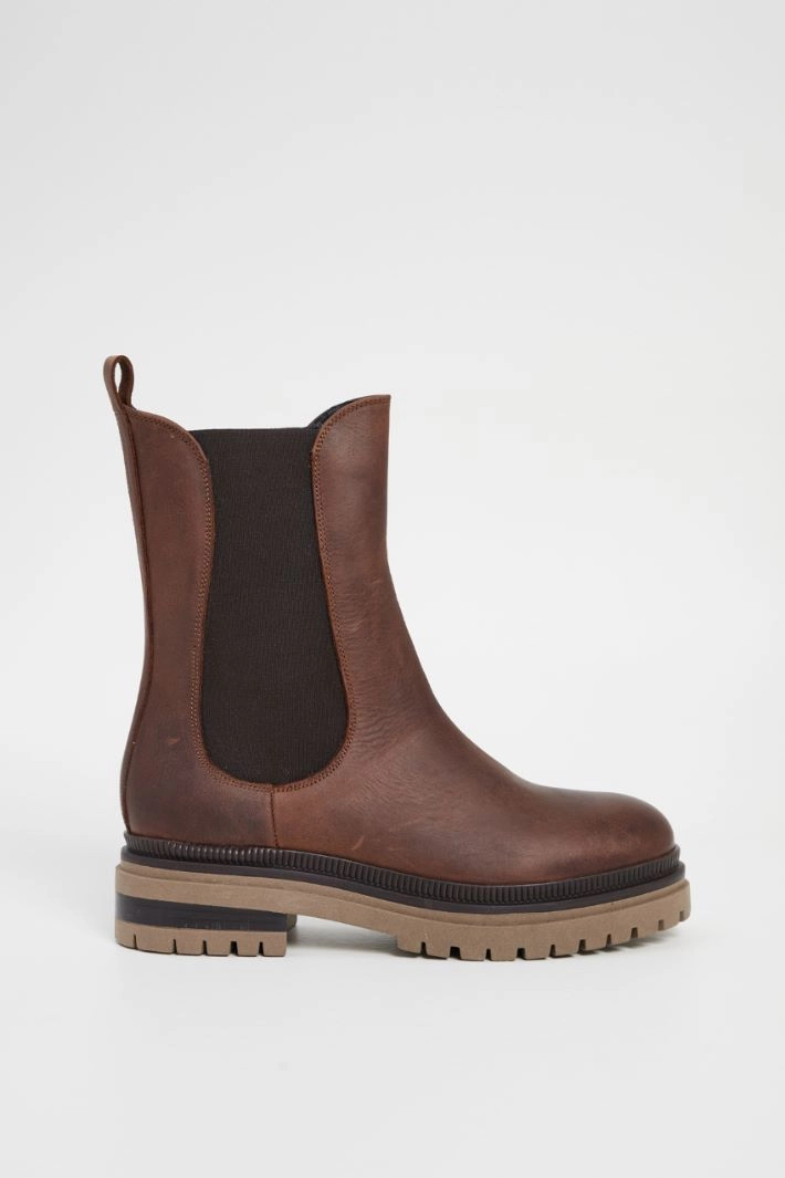 Ankle boots in genuine suede leather, with rounded toe, and elastic inserts on the sides. Leather lining, rubber trekking sole.