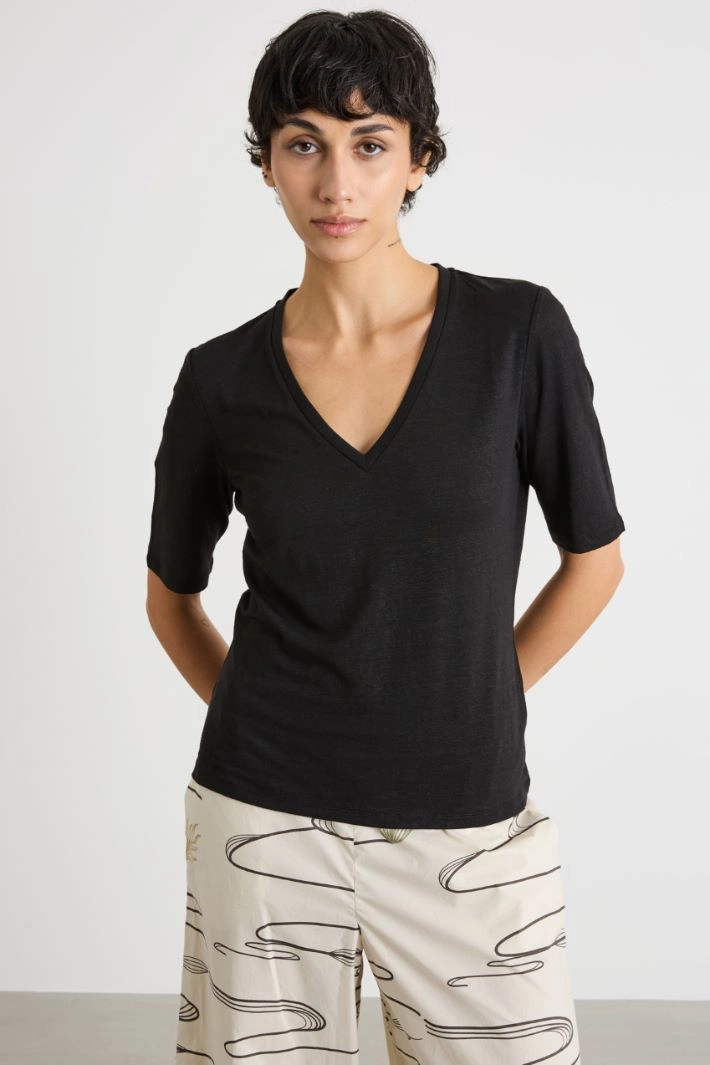 Wide V-neck T-shirt