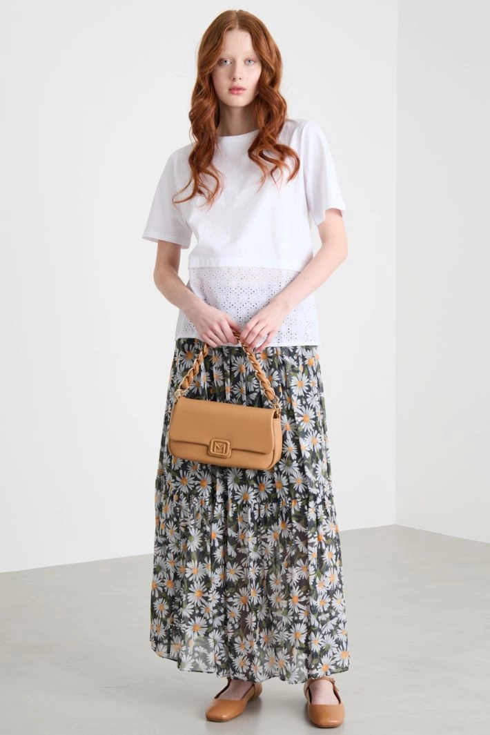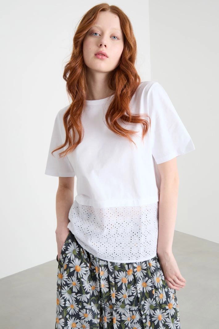 T-shirt with broderie anglaise flounce