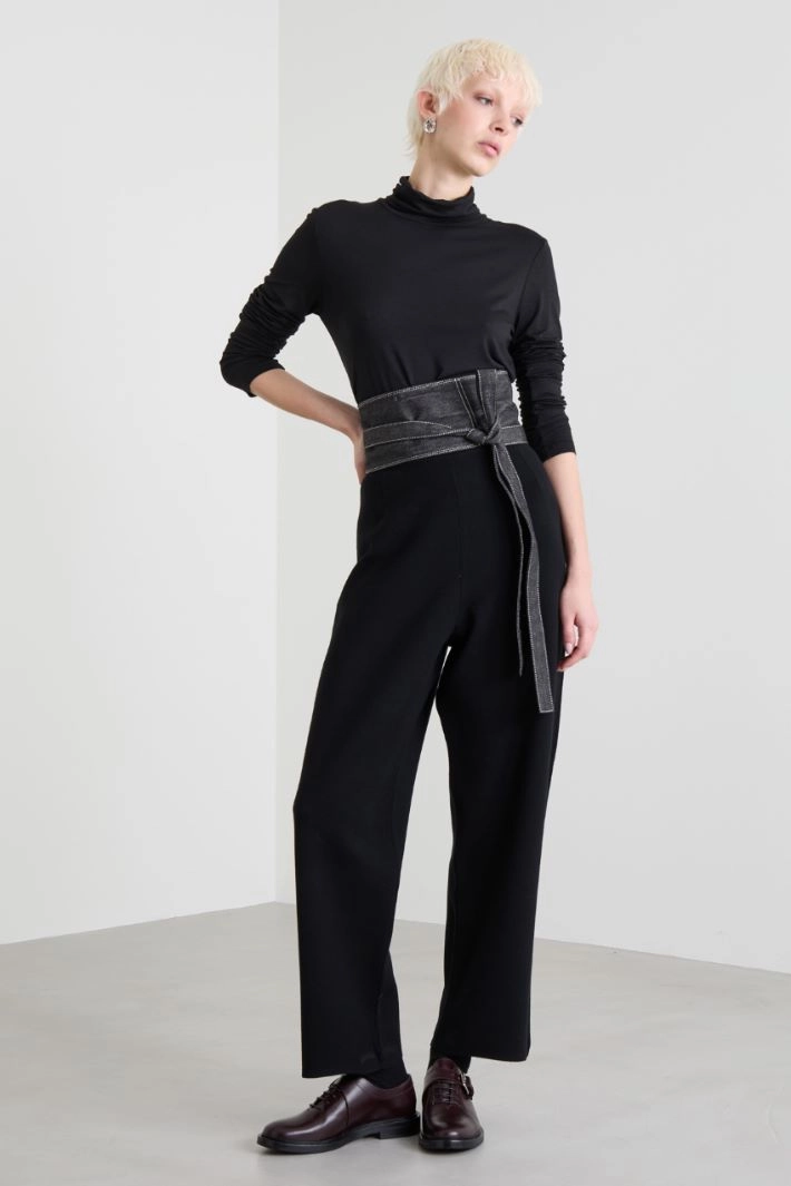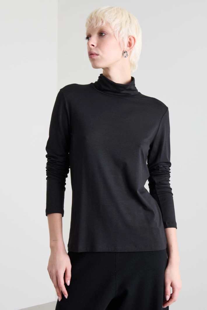 Semi-fitted turtleneck in stretch viscose jersey, with a high neck and long sleeves.