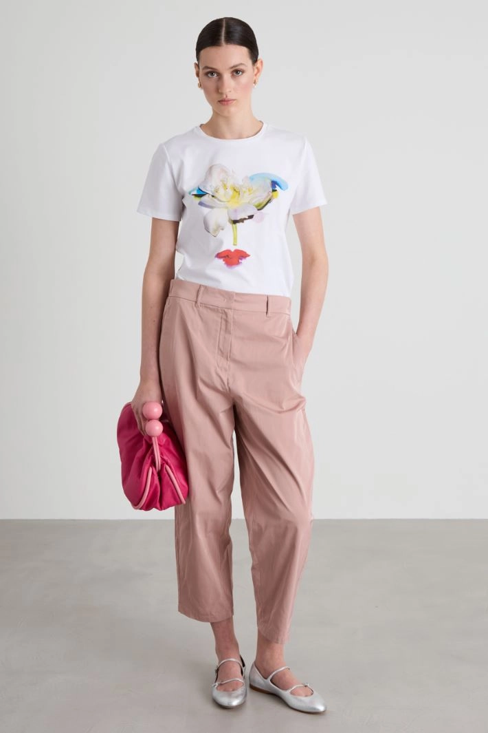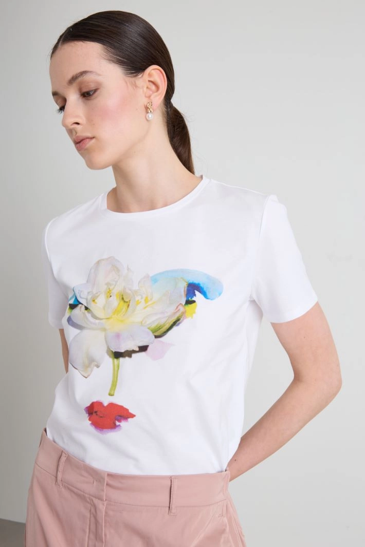 Straight-cut T-shirt in pure cotton jersey with print on the front, crew neck, short sleeves and side slits at the hem.