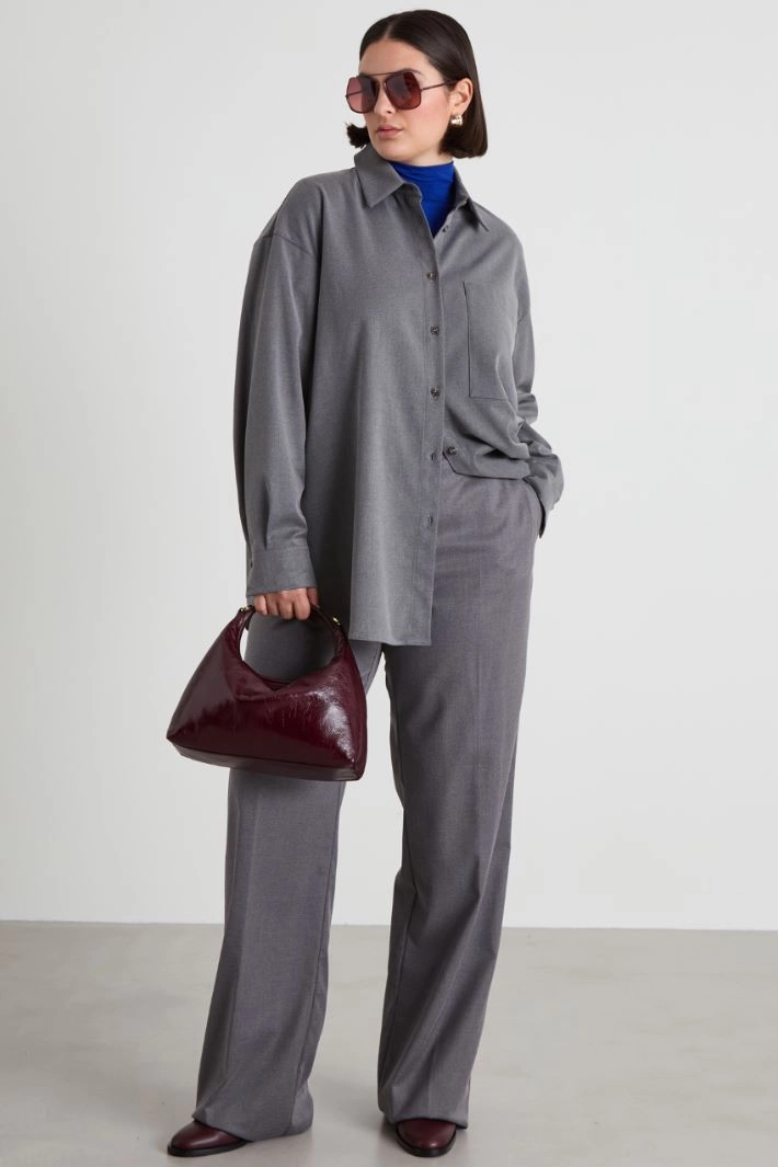 Straight-fit trousers in stretch viscose blend twill, with elastic waistband insert on the back, inset pockets on the sides and pressed crease lengthwise. Zip and button fastening.