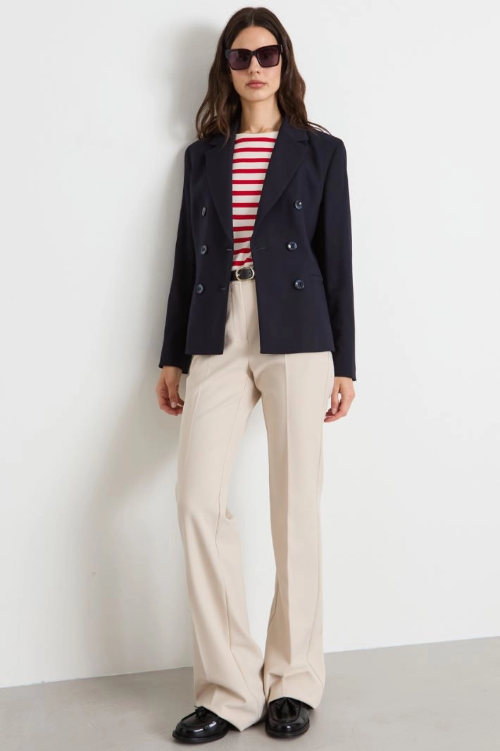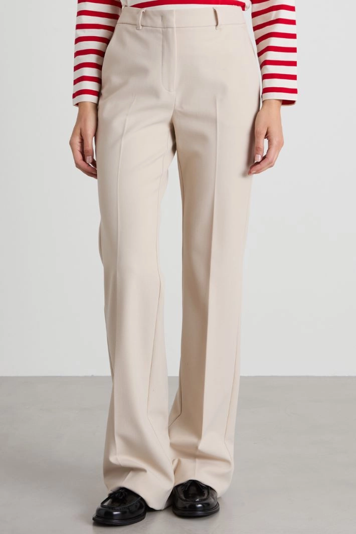 Straight-fit trousers in stretch viscose-blend gabardine, with belt loops at the waist, side French pockets and welt pockets on the back, crease along the length and hidden fastening with zip, button and hook.