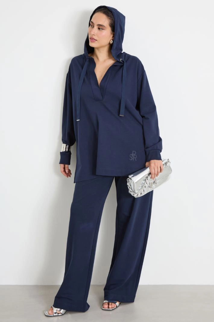Jogger trousers in heavy stretch cotton jersey, with drawstring waist and French side pockets.
