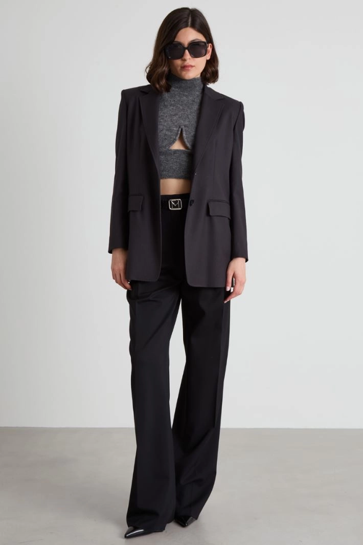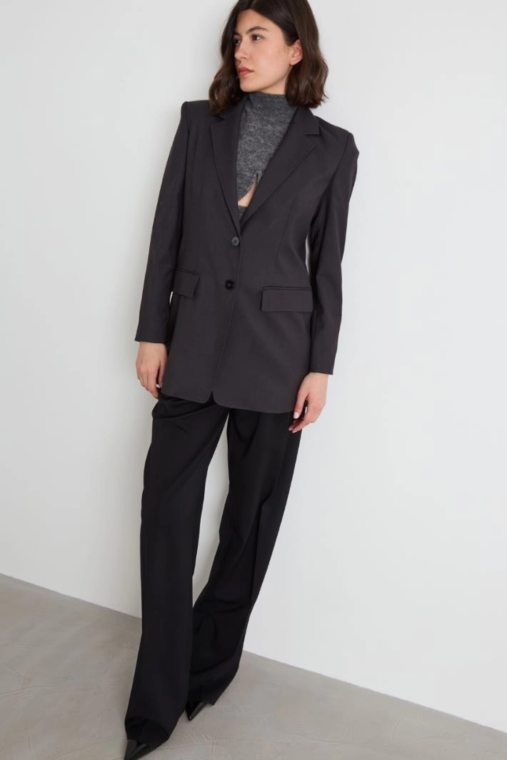Straight-fit blazer in lightweight viscose-blend flannel with a pinstripe finish, lapel collar, long sleeves, flap pockets at front and a slit at center back. Button fastening. Lined.