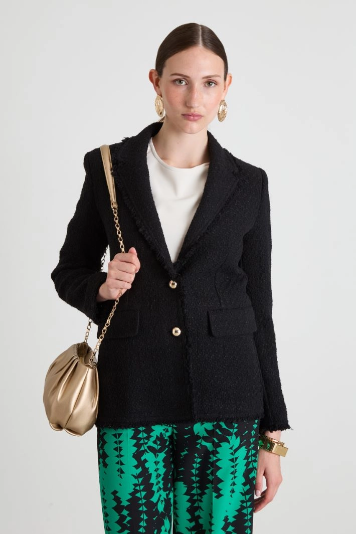 Fitted blazer in cotton blend fabric, with lapel collar, long sleeves and flap pockets. Button fastening.