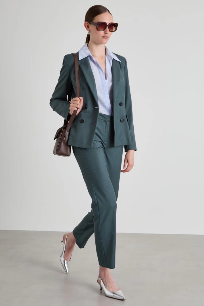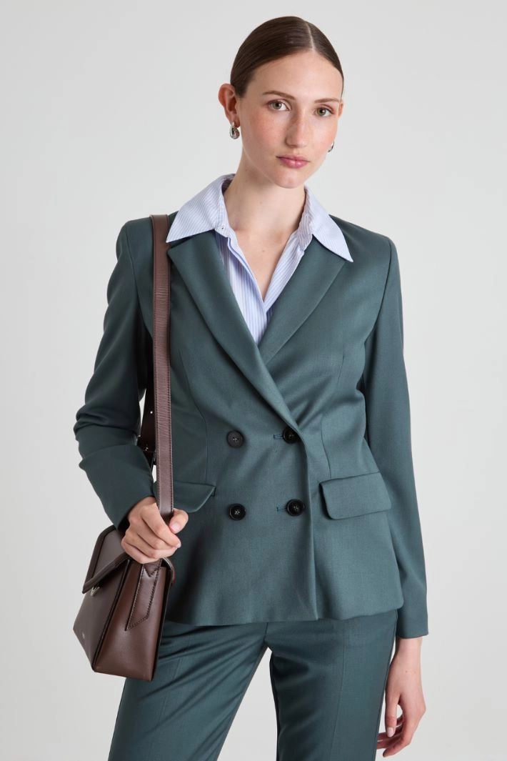 Slim-fit blazer in lightweight, stretch viscose blend flannel with lapel collar, long sleeves and side welt pockets with flaps. Double-breasted button fastening. Lined.