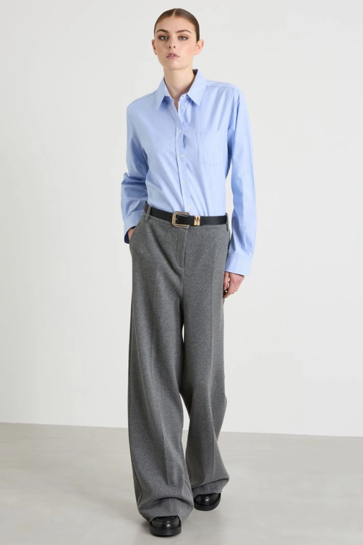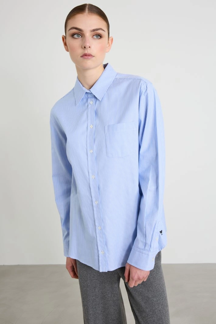 Straight-cut shirt in pure cotton oxford, with classic collar, long sleeves with cuffs and buttons, patch pocket on the chest and yoke with box pleat on the back. Button fastening.