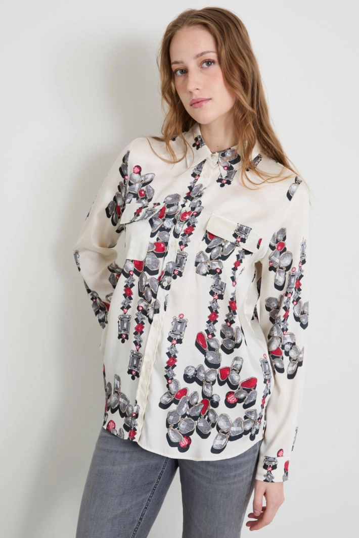 Straight-fit shirt in printed twill, with classic collar, long sleeves with buttoned cuffs, and flap pockets applied to the chest. Button fastening.