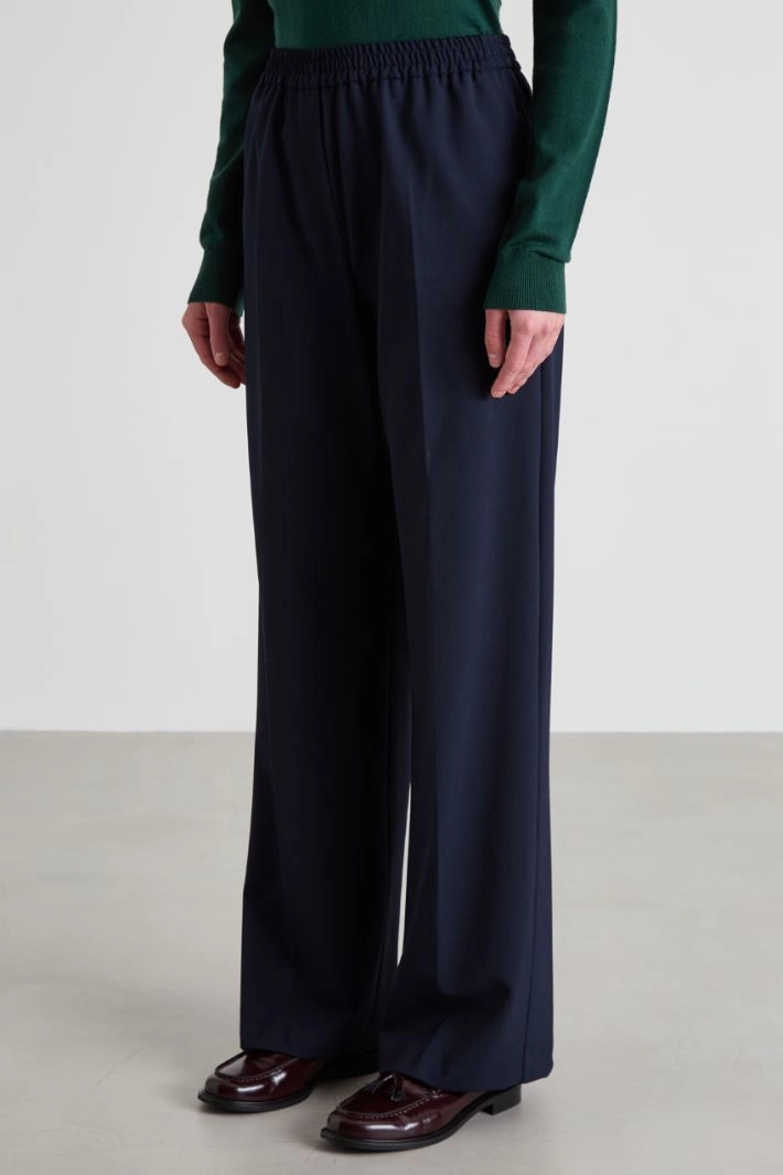 Straight-fit trousers in stretch wool-blend gabardine, with an elasticated waistband finished with an internal drawstring, inset side pockets and welt pockets on the back, and a crease pressed lengthwise.