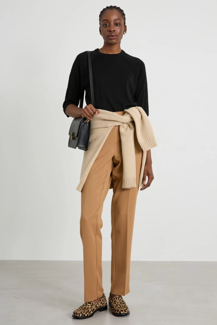 Straight-cut trousers in stretch twill fabric, with pressed crease and fastening with invisible zip on the side.
