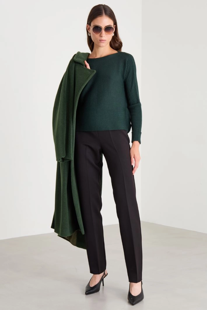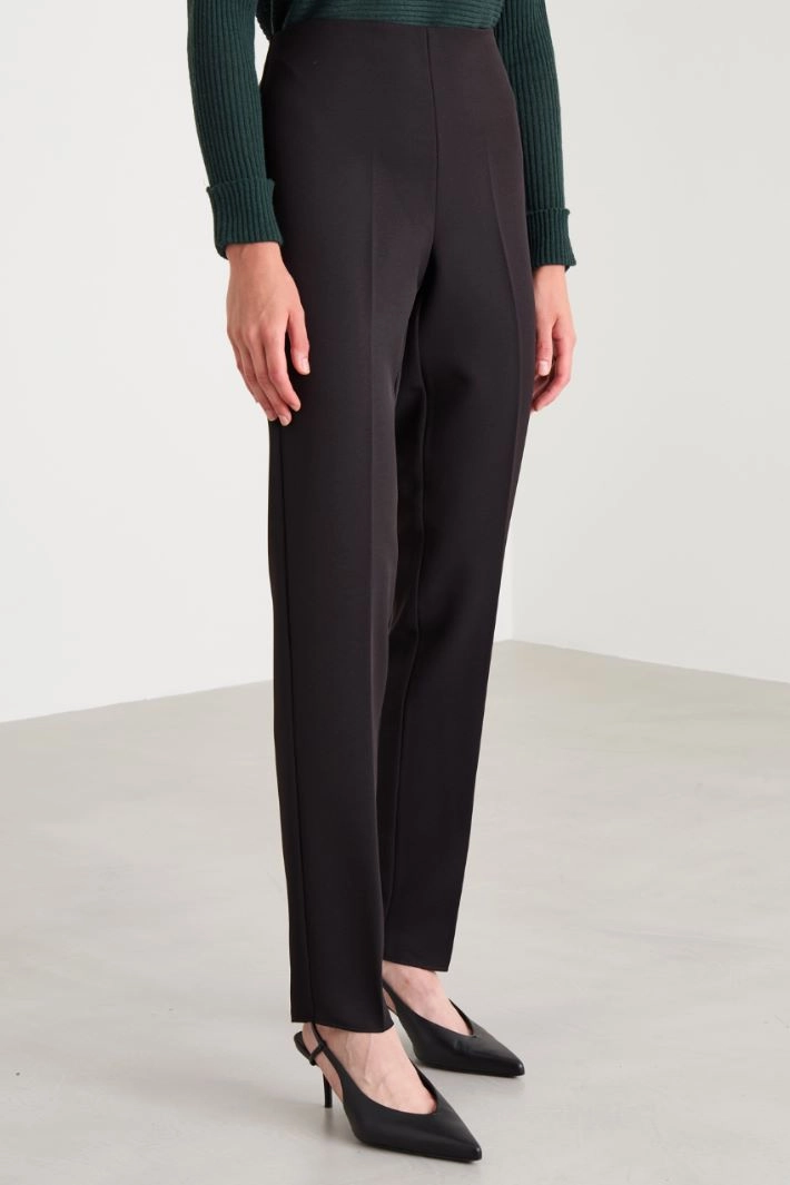 Straight-cut trousers in stretch twill fabric, with pressed crease and fastening with invisible zip on the side.