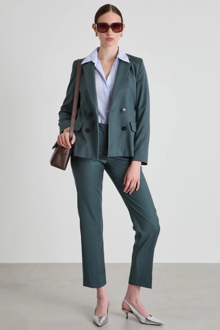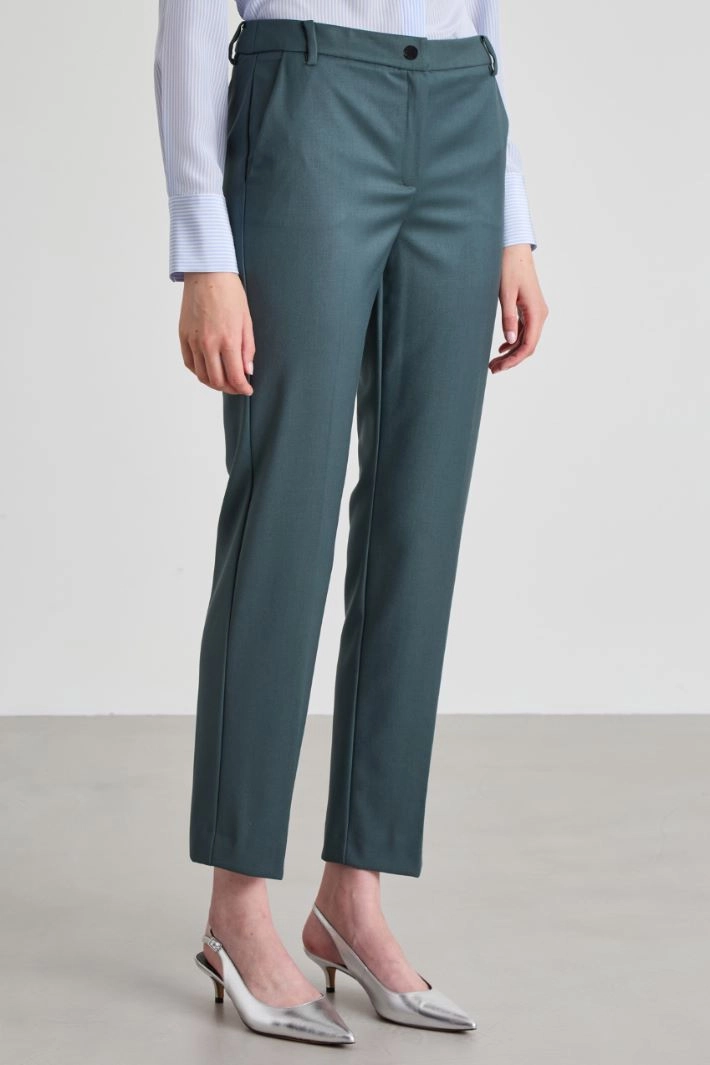 Cigarette trousers in stretch viscose blend flannel, with belt loops, French pockets and crease ironed lengthwise. Zip and button fastening.